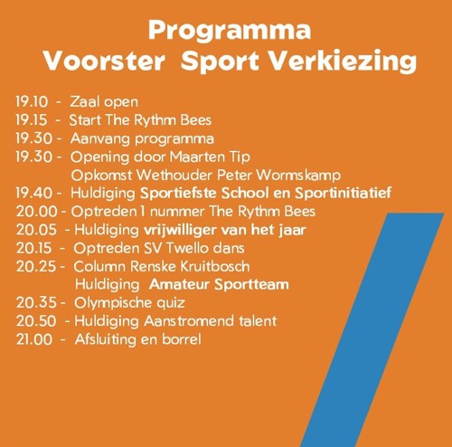 Na het grote succes van de allereerste Voorster Sportverkiezing in 2025 (bekijk vooral de aftermovie!) keert het evenement in 2026 terug met een nóg bredere blik op sportief talent en betrokkenheid binnen onze gemeente! Op woensdagavond 8 april 2026 komen sportliefhebbers, verenigingen, vrijwilligers, scholen en andere betrokkenen opnieuw samen om sportend Voorst in het zonnetje te zetten.