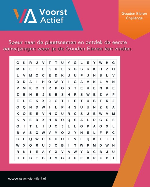 Vier tweede paasdag actief: ga op zoek naar het gouden ei in jouw dorpskern! Tijdens de gouden eieren challenge dagen we iedereen uit om op zoek te gaan naar de verborgen gouden eieren, die verspreid liggen over de verschillende dorpskernen van de gemeente Voorst.