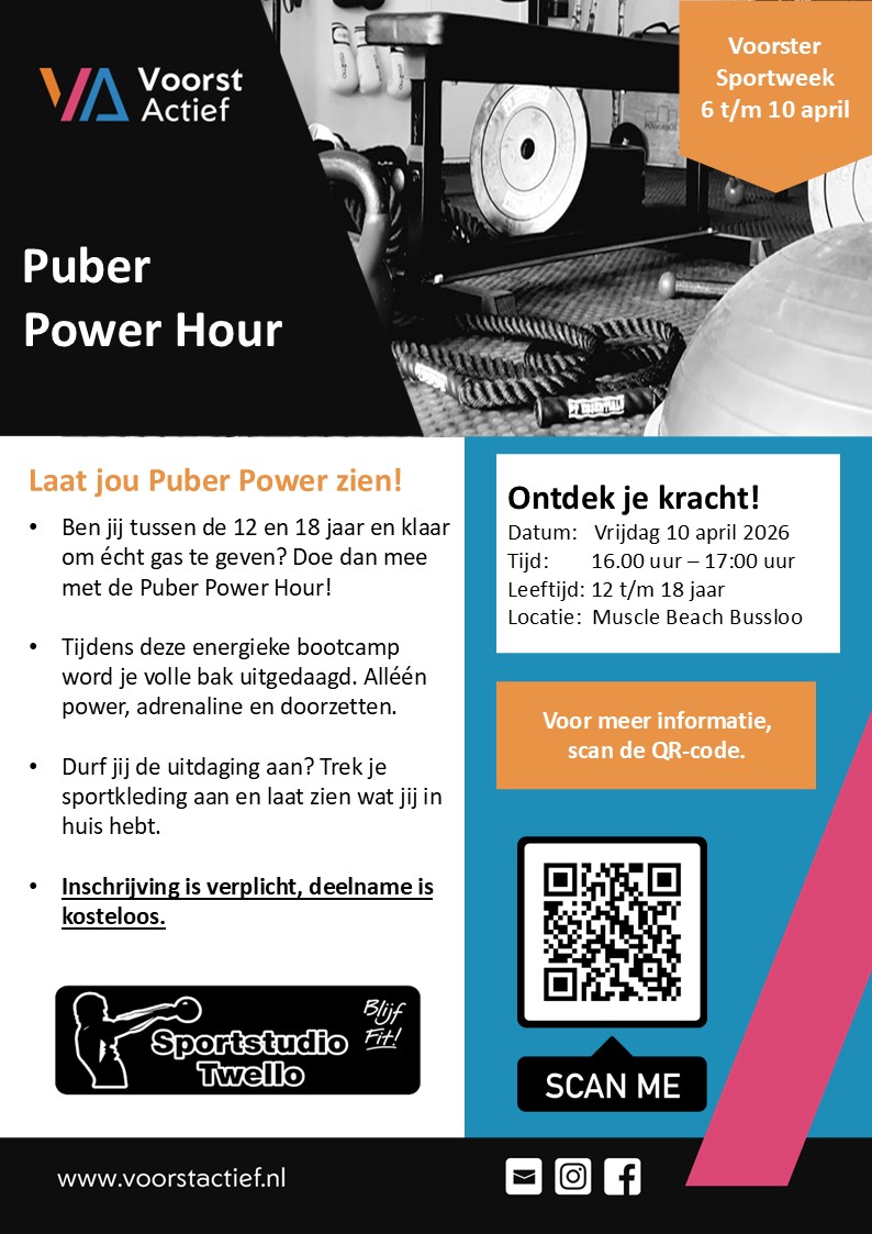 Heb jij zin om een uur lang te sporten samen met leeftijdsgenootjes? Dan is Puber Power Hour wat voor jou! Je gaat in korte, intensieve rondes aan de slag met uitdagende oefeningen zoals sprintjes, krachtopdrachten, teamwork-challenges en andere bootcampelementen. Het tempo blijft hoog, je wisselt van station en traint vaak in kleine groepjes, zodat het nooit saai wordt.